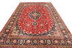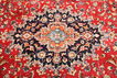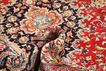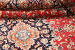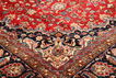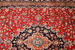 This carpet is knotted in Mashad the capital in the province of Khorasan, an area in norteastern Persia. The patterns are often medallions in dark blue-red and blue nuances and the wool in the carpet is very soft. The Mashad carpets often resemble some Keshan carpets.