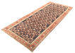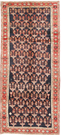 This carpet is knotted in the city of Saveh in northwestern Iran. The carpet is generally colourful, often darkred with strong blue nuances, and have geometrical patterns. They are of high quality and durable, due to the high quality wool used. A carpet worth its price and a part of the group of Hamadan carpets.